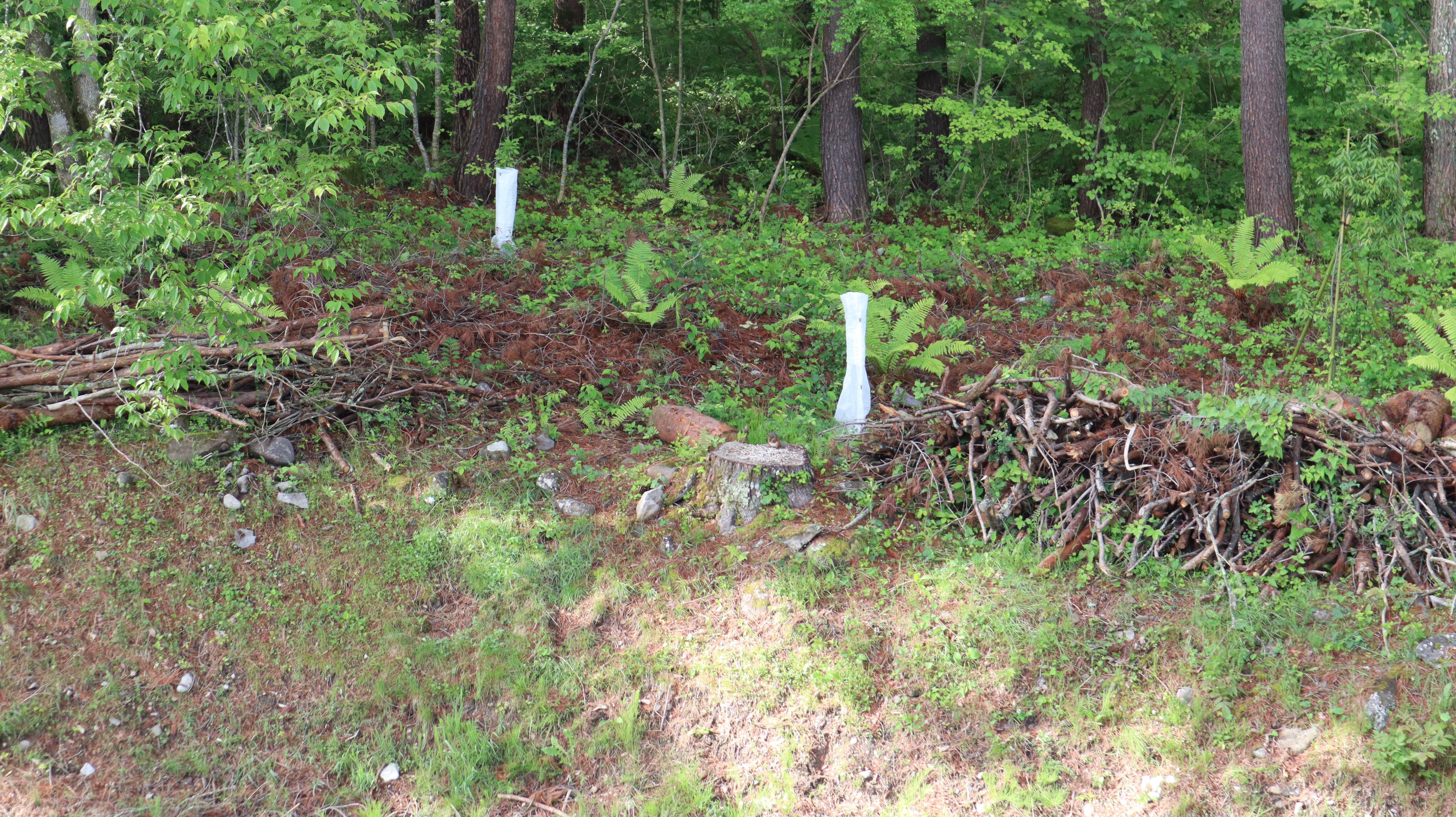 種が撒いてある切り株は5つありますが、どれも同じくらいに食べられた跡がありました。